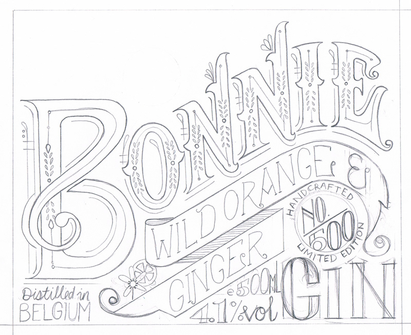 These labels were designed for a micro distillery in Belgium. The brief required a pair of labels that would be applied to a limited run of hand crafted gin. The sweeter tasting gin was to be called Bonnie and the stronger tasting gin was to be called Clyde. All the type on these labels have been created from scratch, finding inspiration from the 1930’s era.